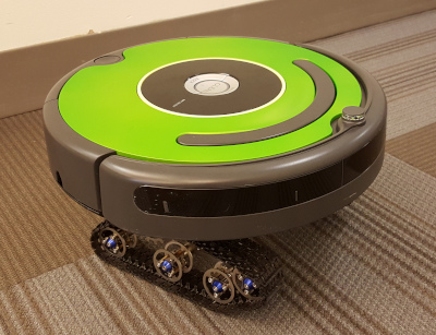 In my over 12 years at iRobot, I've worked on quite a variety of projects. I started out doing government-funded research, then a robotic lawn mower, before finally working on my first consumer robot: the Roomba J7. A selection of the projects I worked can be found below. Roomba J7This robot has a front-facing camera that can see obstacles on the floor in front of it. I helped write the robot software to manage the keep-out-zones for obstacles detected during the mission. Images of the obstacles are then securely sent to the user's phone after the mission to provide the opportunity to go back and clean any areas that might have been missed due to a false-positive detection. Because obstacles are typically detected multiple times from different ranks and directions, care must be taken to only present the user with a single image for each unique obstacle. The images and meta-information for the detection event must also be stored and transmitted to the user's phone securely. My code helped make this POOP Guarantee possible. TerraThis robot lawn mower used UltraWideband (UWB) beacons placed around the yard to do time-of-flight ranging for localization. I was in charge of beacon calibration and much of the beacon system as a whole. This involved robot-side software, beacon firmware, and factory calibration fixtures and scripts. Any sort of RF work, and especially UWB, was completely new to me and I learned a lot of lessons the hard way. Much of my work involved trying to squeeze as much performance and accuracy out of the beacons as possible. This involved calibrating for distance, power, temperature, and bandwidth while meeting FCC laws. Which was tricky because these parameters are interrelated; changing one affects the others. But it was certainly interesting. Especially dealing with RF phenomena like reflection, refraction, diffraction and destructive interference caused by a ground-bounce of the Fresnel zone. Low Cost ArmUsing the lessons learned from the AMR-H and ARM-S programs, we sought to create a low-cost arm that could be used for a household helper robot, (although all the demos we did involved opening beers). Designing a new arm from a blank slate was a joy. While the hardware team was designing the actuators, I did extensive research to determine the optimal arm morphology. I chose the orientation of the joints to give us the largest and "best" work envelope. I did a majority of the arm kinematics, and firmware development on this 7 DOF arm. See paper: Heuristically initialized motion planning in a low cost consumer robot. Videos available upon request. Packbot Door OpeningIn this program, we added a tactile sensing gripper with a break-away wrist to the Packbot arm. This allowed it to be able to open doors much more reliably. We achieved autonomous door opening on push and pull doors with both knobs and levers, even with self-closing mechanisms. See paper: Autonomous door opening and traversal. Human Robot Interaction StudyI worked with researchers at UCF to study humans' perceptions of robot gaze and behavior in a hallway passing interaction. I addition to writing the robot code to exhibit different amounts of assertive/passive behavior, I also had to instrument the test hallway with a LIDAR-based tracking system. See papers: Effects of robotic social cues on interpersonal attributions and assessments of robot interaction behaviors and Effects of robot gaze and proxemic behavior on perceived social presence during a hallway navigation scenario. This video demonstrates two of the robot behaviors. Autonomous Surface CraftFor this project, we created an autonomous surface craft with deployable ROV. Autonomous Robotic Manipulation - HardwareThis was the hardware track of the DARPA Autonomous Robotic Manipulation competition. The goal of this program was to further the development of robot hands by making them more capable and lower cost. While the overall morphology of our team's hand was similar to other three-fingered robot hands currently in existence, it had many new and novel features. For example, completely rubber and under-actuated distal joints, break-away fingers, low-cost hobby brushless motors, and extensive rubber padding with integrated pressure sensing. The pressure sensing was achieved with over-molded barometer sensors. I was the primary software engineer on this project. It involved networking seven AVR XMEGA microcontrollers and a Gumstix which were used to service 114 pressure sensors, 6 accelerometers, 4 encoders, 5 motors, and a variety of other sensors. High-level interaction was provided through ROS and I was responsible for code updates to "customers". We provided this hand to ARM-S teams, then later hardened it and provided it to competitors in the DARPA Robotics Challenge to use on the Boston Dynamics Atlas robot. Autonomous Robotic Manipulation - SoftwareThis was the software track of the DARPA Autonomous Robotic Manipulation competition. The goal of this program was to push the state-of-the-art of autonomous robotic grasping and manipulation. Six teams were provided with standardized hardware: A Barrett WAM arm, a Barrett hand, and Bumblebee2 stereo pair on a pan-tilt neck. Tasks ranged from simple pick-and-place of common objects to advanced manipulation tasks such as inserting a key in a lock, door opening, and operating a drill. I was the main integrator on iRobot side. We worked with large academic teams at UPenn and UMass Amherst to create a system consisting of 72 ROS Nodes, 398 ROS Topics, and 211 ROS Services. Create 2Yes, this is a real thing. Yes it actually drives. I used the Roomba Wheel Hack instructions (that I wrote) to interface these new wheel modules into the Roomba. The robot thinks it is driving its own wheels! Only minimal modifications to the Roomba were required. I had to defeat the cliff sensors (obviously). And I also had to bypass the motor over-current sensing circuitry.
